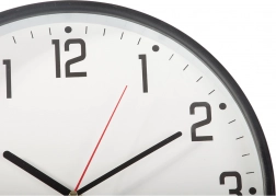 Průměr 30 cm, kontrastní číslice a výrazné ručičky umožňují snadné odečítání času i z větší vzdálenosti.
