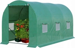 Robustní rám z oboustranně pozinkovaných ocelových trubek Ø 19 mm odolá korozi i náročnému počasí. Zemní límec umožní zasypání zeminou, čímž brání podfouknutí plachty a zlepšuje tepelnou izolaci. Široké roletové dveře a větrací okna s moskytiérou zajišťují regulaci teploty a vlhkosti, pohodlný přístup i ochranu před hmyzem.