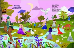 Každá stránka je plná nápaditých ilustrací, které lze doplnit samolepkami. Děti si procvičí logické myšlení, představivost a hravou formou poznají svět pohádkových bytostí. Knížka je lehká a snadno přenosná.