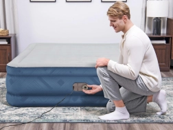 Integrovaná elektrická pumpa 220–240 V nafoukne postel přibližně za 3 minuty. K dispozici je i možnost ručního/šlapacího dofukování mimo dosah elektřiny.