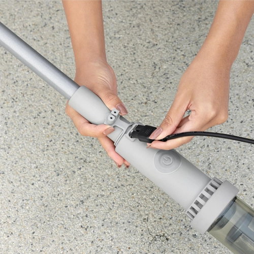 Vestavěná baterie poskytuje až 50 minut provozu a nabíjí se přes USB za 4–5 hodin. Nečistoty jsou shromažďovány v snadno přístupném nerezovém filtru, který jednoduše vyjmete a vyprázdníte. Otočná sací hlava s kolečky a kartáči zajistí důkladné čištění dna i stěn bez poškození povrchu.