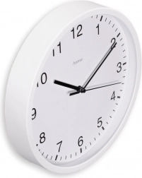 Bílý ciferník s černými arabskými číslicemi a třemi ručičkami zaručuje rychlou orientaci v čase i z větší vzdálenosti.