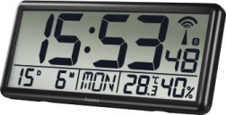 Užijte si perfektní přehled o čase díky velkoformátovým číslicím a přesnému rádiovému signálu DCF. Hodiny zobrazují čas včetně sekund, datum a den v týdnu a zároveň měří teplotu a vlhkost v interiéru. Skvěle se hodí do obývacího pokoje, kuchyně, recepce i zasedací místnosti.