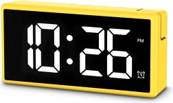Stylový a praktický digitální budík v energické žluté barvě nabízí velký vícebarevný LED displej, programovatelný alarm a USB port 1 A pro nabíjení telefonu. Díky 4 úrovním jasu včetně úplného vypnutí při nabíjení, přepínání 12/24 h, funkci drzemky a regulaci hlasitosti alarmu (tichý/normal/hlasitý) je ideální do ložnice i dětského pokoje.