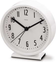 Stylový stolní budík Hama Skye zajistí přesné buzení a klidný spánek díky tichému plynulému chodu. Má analogový ciferník s velkými černými číslicemi pro snadné čtení času, jednoduché nastavení jednoho alarmu a elegantní bílé provedení vhodné do každé ložnice.