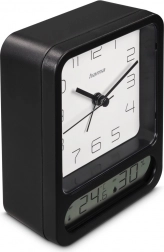 Tento stylový budík spojuje klasický vzhled s moderní funkcionalitou. Velký analogový ciferník s kontrastní bílou plochou a arabskými číslicemi zajišťuje skvělou čitelnost, zatímco spodní digitální displej průběžně zobrazuje teplotu a vlhkost v interiéru. Získáte tak praktickou domácí meteostanici a spolehlivý časoměřič v jednom.