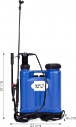 Praktický zádový postřikovač s objemem 16 l od MULTIGARDEN pro údržbu zahrady i domácí čištění. Nabízí tlak 2–4 bar, dlouhou lance, 4 výměnné trysky, široký plnicí otvor s filtrem a aretační spoušť pro nepřetržitý postřik. Díky nastavitelným ramenním popruhům se pohodlně nosí jako batoh.