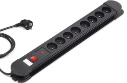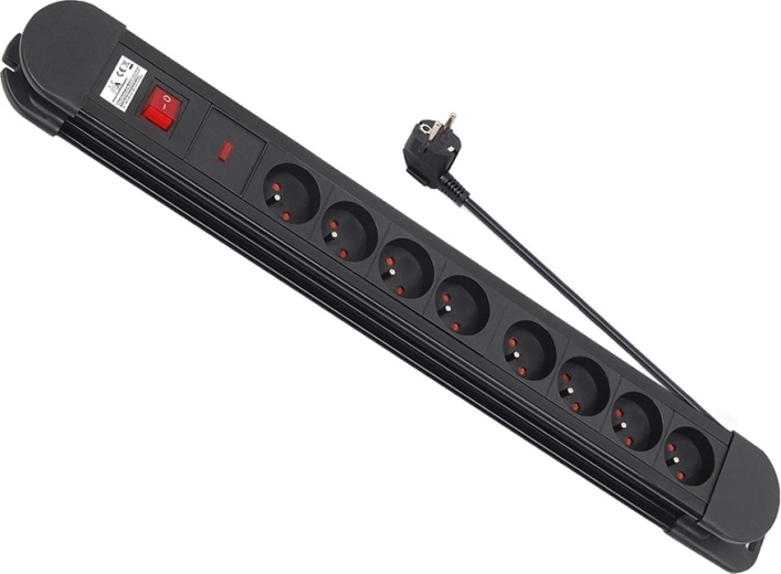 Lišta je vybavena otvory a výřezy pro snadnou nástěnnou montáž, takže ji můžete umístit přesně tam, kde potřebujete – pod stůl, na stěnu nebo do rozvaděče kabelů. Kabel o délce 1,5 m poskytuje dostatečný dosah k nejbližší zásuvce a udržuje pracoviště přehledné.