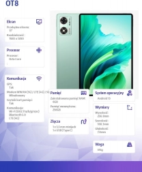 Vybaven osmijádrovým procesorem Unisoc T606 a 6 GB RAM s možností rozšíření až na 30 GB, zařízení zvládne i náročné úkoly. S vnitřní pamětí 256 GB, rozšiřitelnou na 1 TB, nabízí dostatek prostoru pro všechny vaše soubory. Vysokokapacitní baterie 8800 mAh zajistí, že budete mít energii na celé dva dny běžného používání.
