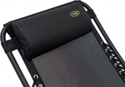 Prodyšný materiál odvádí teplo a vlhkost, zatímco výškově nastavitelný polštář podepírá krční páteř pro dlouhé hodiny relaxu bez tlaku na záda.
