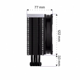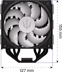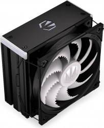ENDORFY Fera 5 Black ARGB je kompaktní a výkonný vzduchový chladič, navržený ve spolupráci se Synergy Cooling pro co nejlepší poměr výkon/hluk. Husté žebrování, asymetrický pasiv a čtyři měděné heatpipe s přímým dotykem IHS procesoru efektivně odvádějí teplo i při vysoké zátěži, zatímco optimalizovaný jednosměrný průtok vzduchu zvyšuje účinnost chlazení.