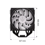 Součástí je prémiový ventilátor Fluctus 120 PWM ARGB na ložisku FDB se speciálně tvarovanými lopatkami a vlnkovanou hranou pro snížení nežádoucího šumu. Funkce fan‑stop umožní polosilentní provoz při nízké zátěži. Elegantní celokovové černé provedení a adresovatelné ARGB podsvícení ventilátoru i horního krytu snadno sladíte s jakoukoliv sestavou – ať už přes základní desku, nebo pomocí přiloženého Nano‑Reset ARGB kontroleru.