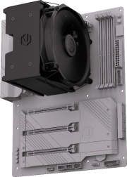 Celé tělo chladiče je v matně černém provedení pro čistý vzhled a snadné sladění se zbytkem sestavy. Díky přiloženému montážnímu systému je instalace rychlá a jednoduchá na platformách AMD i Intel. V balení nechybí ani kvalitní teplovodivá pasta Pactum PT‑3 pro více aplikací.