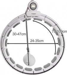 Díky nastavitelnému obvodu 75–109 cm snadno přizpůsobíte velikost své postavě – odebíráním segmentů. Nastavitelné závaží (20–37 cm) dovolí přesně zvolit intenzitu, a tím účinně tvarovat pas, břicho, boky i záda. Systém rychlospojek zajišťuje složení do 50 sekund bez nářadí, takže kruh snadno sbalíte a vezmete kamkoli.
