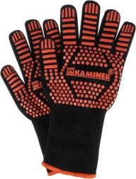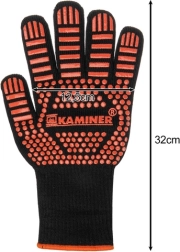 Tyto žáruvzdorné rukavice KAMINER jsou navržené pro manipulaci s horkými nádobami, rošty a plechy. Pevná vícevrstvá konstrukce s příměsí preoxidovaného vlákna a silikonovým protiskluzem zajišťuje jistý úchop a krátkodobou ochranu před vysokými teplotami při vaření i grilování.