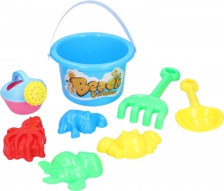 - 8 dílů v balení: kyblík s obrázkem, lopatka, konvička, hrabičky a 4 formičky