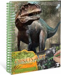 Objevte kouzlo fantastických motivů s vyškrabovacím deníčkem DinosArt. Každá stránka nabízí umělecké plátno připravené ke kreativitě.