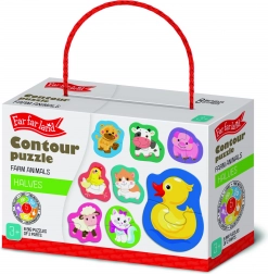 Objevte svět farmy s jednoduchými obrysovými puzzlíky, které jsou skvělé pro první seznámení s puzzle. Každý z 8 obrázků se skládá ze 2 pevných dílků, které do sebe snadno zapadají. Děti si procvičí jemnou motoriku, logické myšlení i poznávání zvířátek.