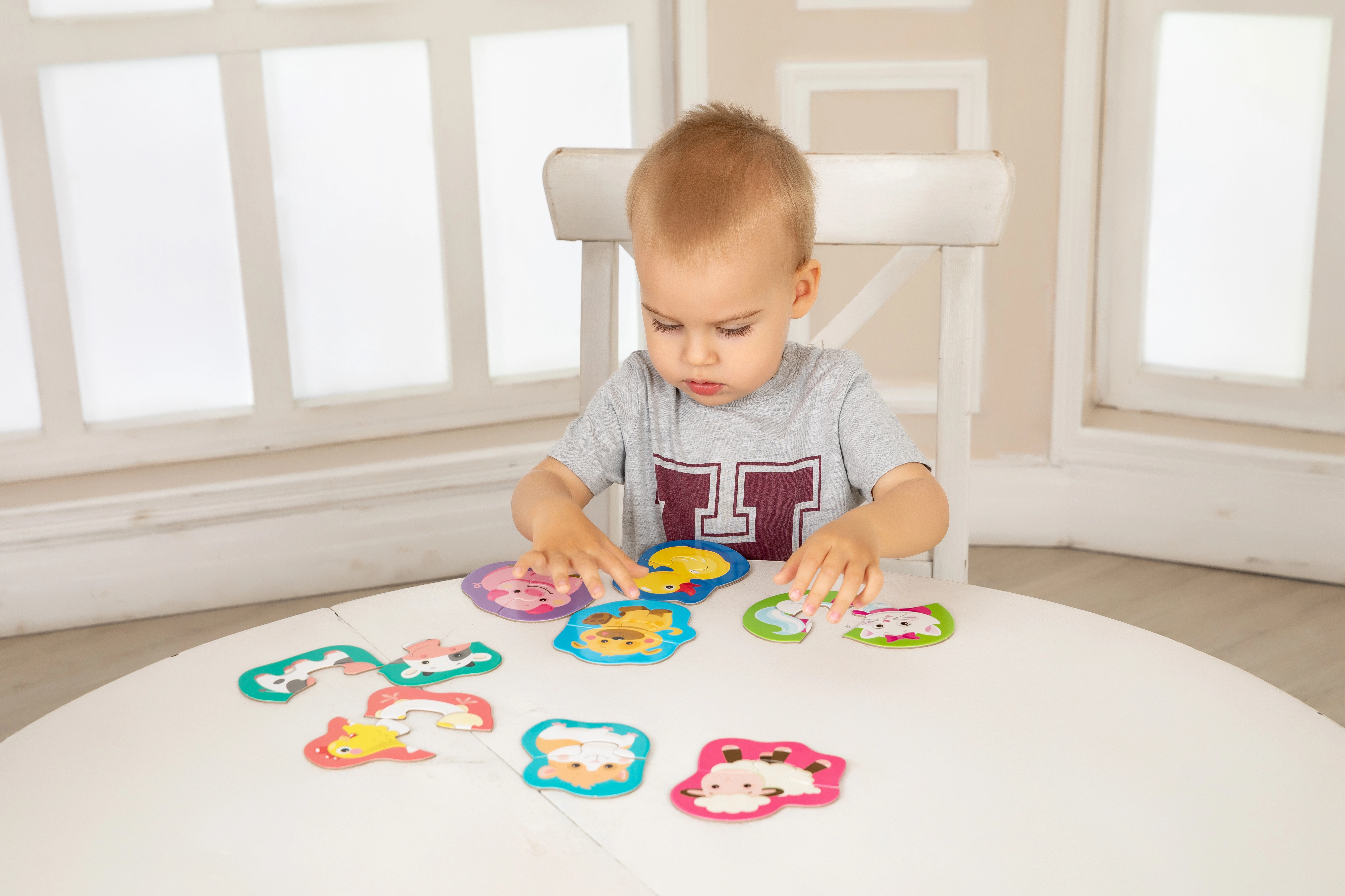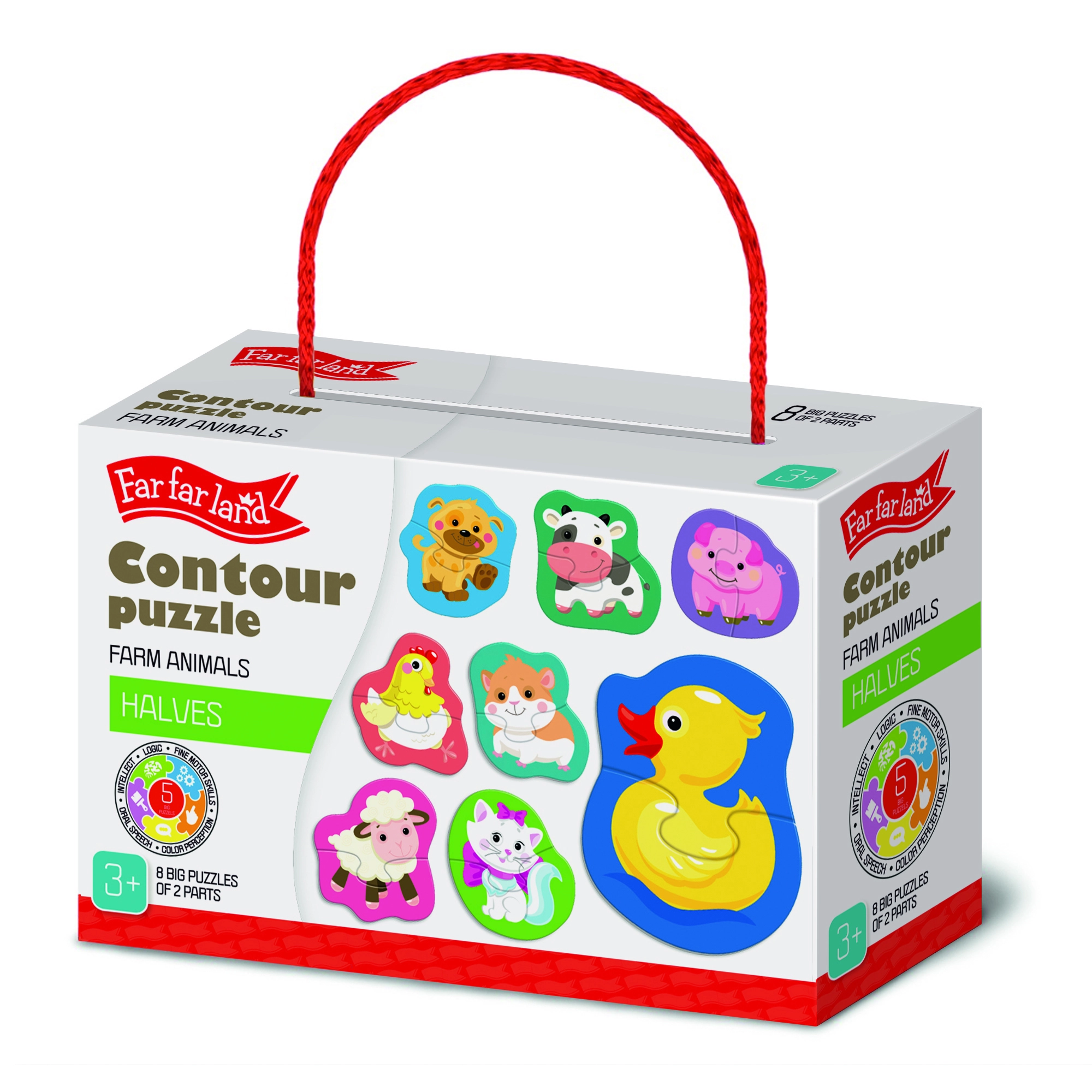 Zábavné obrysové puzzle pro nejmenší s motivem zvířátek z farmy. Balení obsahuje 8 samostatných obrázků po 2 dílcích – ideální pro první skládání a rozvoj jemné motoriky. Jednoduché dvoudílné skládanky, roztomilá zvířátka z farmy a učení hrou potěší každé malé dítě.