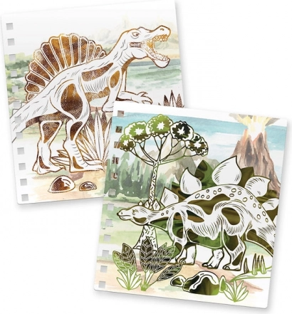 Kreativní fóliové omalovánky DinosArt: 12 předloh, 12 fólií, lepící pero a informace o dinosaurech. Lesklé efekty, snadné tvoření, skvělý dárek pro děti.