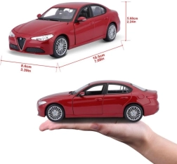 Model v měřítku 1:24 nabízí otevírací dveře a kapotu, detailně zpracovaná kola a autentické proporce. Ideální dárek pro milovníky italských sportovních sedanů a kvalitních modelů aut.