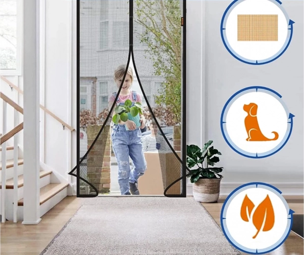 Praktická moskytiéra na dveře účinně zastaví komáry, mouchy i vosy, zatímco zachová volný průchod vzduchu a dostatek světla. Díky snadné instalaci na suchý zip a automatickému zavírání magnety je ideální na balkon, terasu i vstupní dveře.