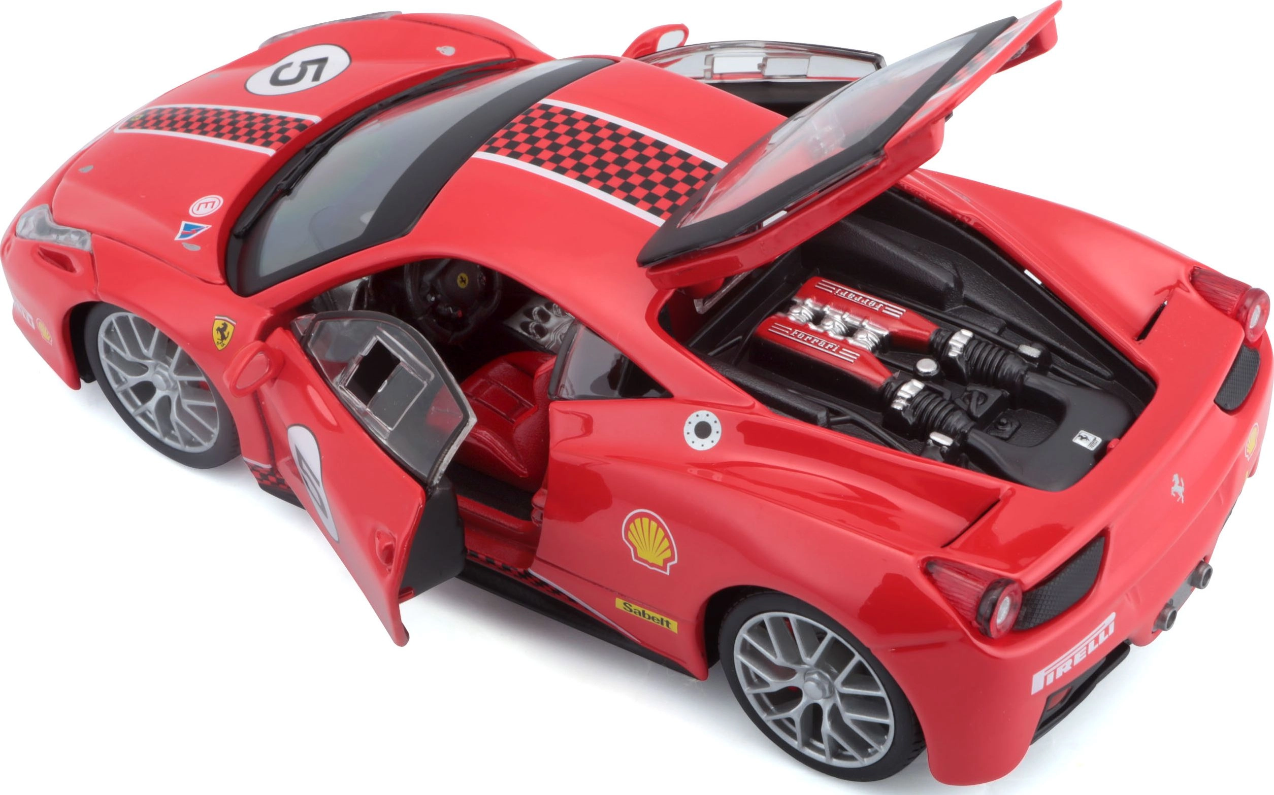 Tento licencovaný model vozu Ferrari 458 Challenge potěší kvalitním zpracováním karoserie, precizními potisky a věrnými proporcemi. Díky otevíracím částem a detailnímu interiéru je perfektní jak pro výstavku, tak pro hraní.