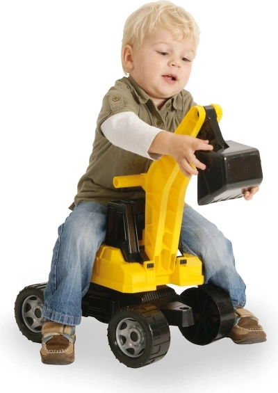bagr je vybaven pohyblivým ramenem a lžící, což umožňuje simulovat reálné stavební práce a stimulovat dětskou kreativitu.