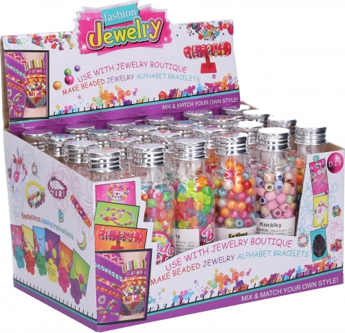 Tvořte vlastní šperky s barevnými korálky v lahvičce. Skvělý dárek pro kreativity chtivé děti.