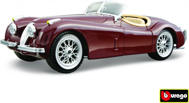 Model Bburago Jaguar XK 120 Roadster (1951) v měřítku 1:24 přináší legendární britský roadster ve stylové červené. Věrohodné linie karoserie, autentické prvky interiéru a kvalitní lakování zvýrazňují eleganci vozu, který ve své době patřil k nejrychlejším sériovým automobilům.