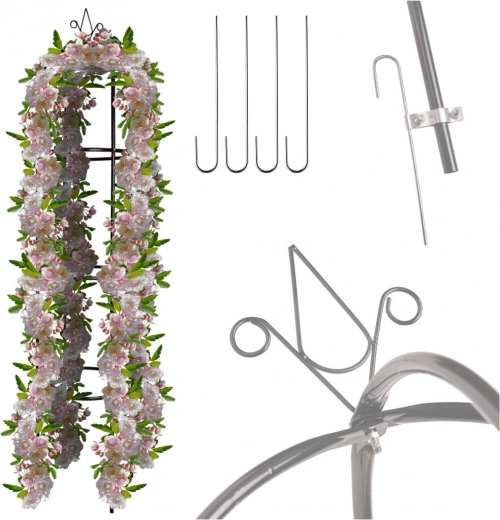 Robustní konstrukce z kovu se sloupky o průměru 1,5 cm zajišťuje odolnost vůči povětrnostním vlivům a dlouhou životnost. Pergolu lze zapíchnout do země nebo umístit do větší nádoby pro bezpečné a pevné ukotvení.
