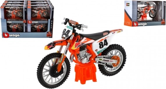 Motocykl Bburago vyniká svým detailním zpracováním, které přináší autentický vzhled biku KTM 450 SX-F Factory Edition 2018.