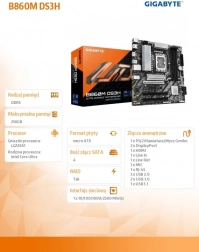 Postavte si výkonný a spolehlivý systém s deskou Gigabyte B860M DS3H, která podporuje nejnovější procesory Intel Core Ultra (2. generace). Hybridní napájecí kaskáda 5+1+2 fází zajišťuje stabilitu i při zátěži, zatímco technologie AI PerfDrive nabídne optimalizované profily BIOSu pro výkon i tichý chod.