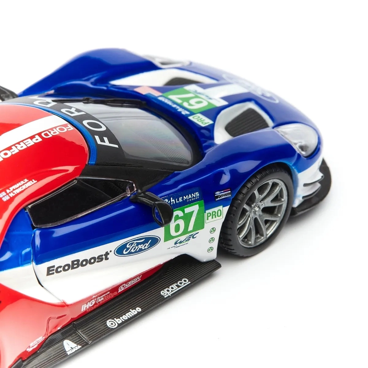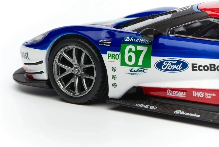 Originální potisky FORD, EcoBoost a startovní číslo 67 dodávají modelu závodní charakter, který vynikne ve vitríně i na fotkách.