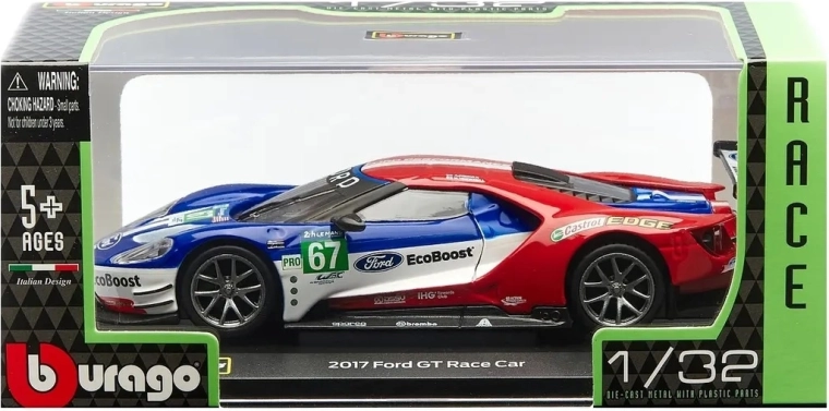 Model v měřítku 1:32 měří přibližně 13 cm a zaujme modrou metalízou, velkým zadním křídlem, difuzorem a realistickými prvky, jako jsou zrcátka, brzdové detaily a závodní startovní čísla. Skvělá volba pro fanoušky značky FORD, vytrvalostních závodů a kolekcionáře modelů aut.