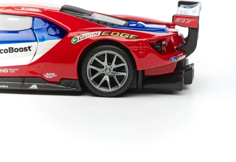 Velké zadní křídlo, difuzor a přední splitter věrně kopírují skutečný závodní speciál FORD GT pro maximální autentičnost.
