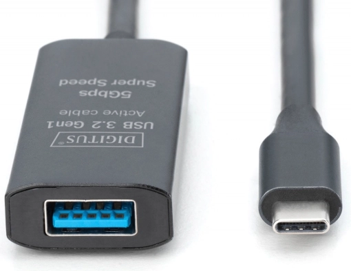 Aktivní prodlužovací kabel USB 3.2 Gen1 od Digitus poskytuje vysokorychlostní přenos dat až 5 Gbit/s na vzdálenost 10 metrů. Ideální pro připojení zařízení na větší vzdálenosti bez ztráty rychlosti.