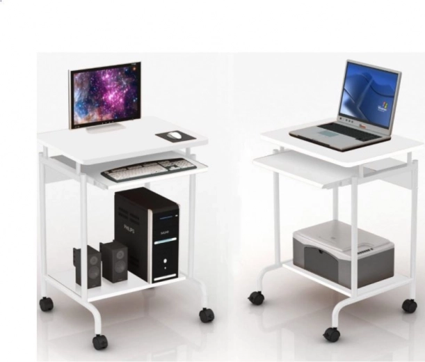 Kompaktní počítačové stůl navržené pro notebooky nebo menší počítače, optimalizace prostoru a pohodlná pracovní stanice.