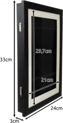 Stylový rám pro dětské výkresy formátu A4, který pojme až 150 prací. Díky otevíracímu čelu a magnetickému zavírání snadno a rychle obměníte výstavu bez sundávání ze zdi. Bezpečné materiály (akryl místo skla, MDF) a jednoduchá montáž bez vrtání pomocí bezstopových háčků dělají z tohoto rámu ideální volbu do dětského pokoje.