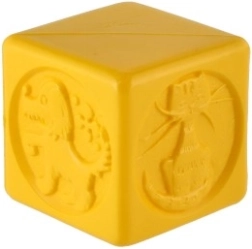 Každá kostka je reliéfovaná zvířecími motivy, které pomáhají rozvíjet hmatové a vizuální dovednosti dítěte.