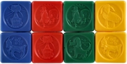Představujeme sadu osmi barevných plastových kostek, které jsou ideální pro rozvoj motorických schopností a kreativity vašich dětí. Kostky přicházejí ve čtyřech různých barvách a s různými zvířecími motivy, což podporuje vizuální učení a poznávání barev.