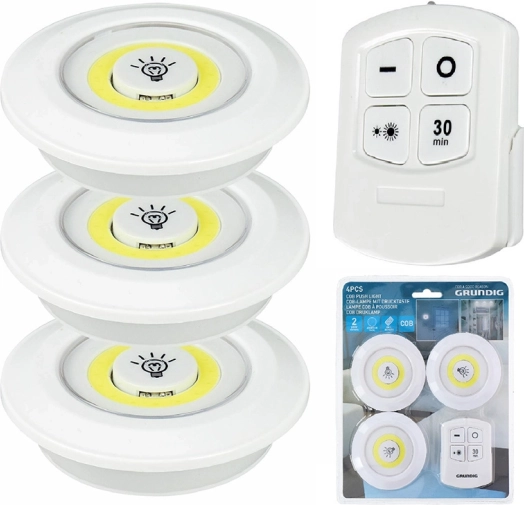 Se svým studeným světlem a energetickou účinností je toto svítidlo ideální pro osvětlení obtížně dostupných míst. Svítidla jsou napájena třemi AAA bateriemi (nejsou součástí balení) a dálkové ovládání dvěma AAA bateriemi (nejsou součástí).