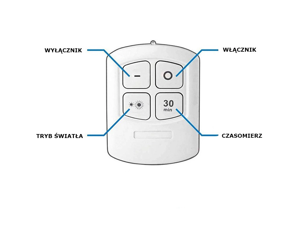 Dálkové ovládání umožňuje snadné zapnutí a vypnutí svítidla na dálku. S dvěma režimy svícení a možností nastavení časovače, který svítidlo vypne po 30 minutách, je tento produkt velmi funkční.