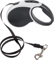 Vodítko je vybaveno odolným a oděruvzdorným popruhem, ideálním pro intenzivní použití. Systém automatického navíjení zabraňuje zamotání vodítka.
