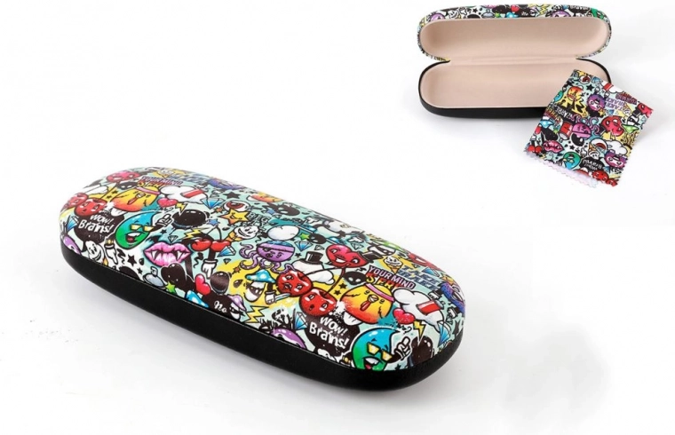 Hledáte praktickou ochranu pro své dioptrické nebo sluneční brýle? Toto pouzdro s motivem graffiti kombinuje moderní design a spolehlivou ochranu. Uvnitř najdete měkkou výstelku, která minimalizuje riziko oděrek a poškození skel, a také utěrku z mikrovlákna pro snadné a šetrné čištění.