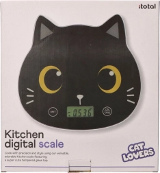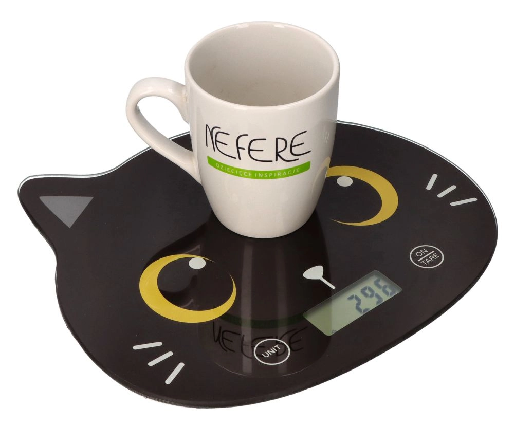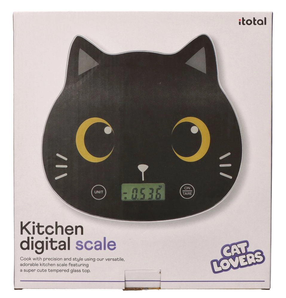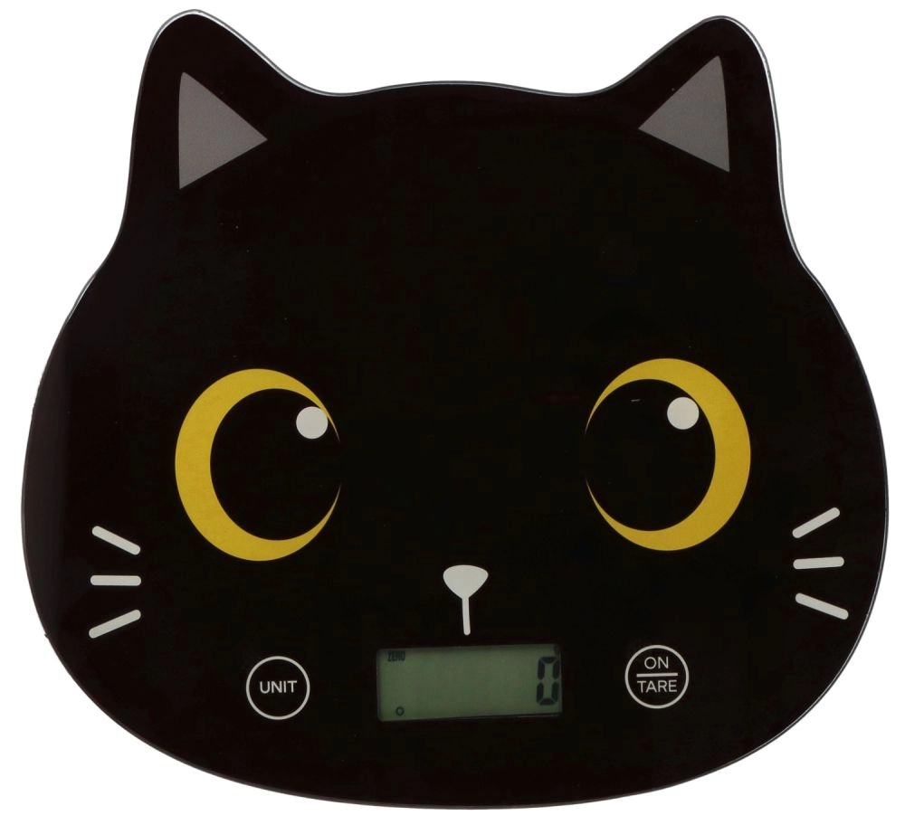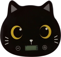 Tato elegantní kuchyňská váha s motivem černé kočky kombinuje přesnost, jednoduché ovládání a hravý vzhled, který ozvláštní vaši linku. Skleněný povrch se snadno čistí a je hygienický, takže je vhodný pro vážení surovin přímo na ploše nebo v misce.