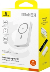 Vybavená obrovskou kapacitou 10 000 mAh, umožňuje Baseus Airpow II několik plných nabití telefonu nebo jiných zařízení. Tato powerbanka nabízí jak bezdrátové, tak kabelové nabíjení s výkonem až 22,5 W, což zkracuje dobu nabíjení a umožňuje použití pro různé typy zařízení včetně Android a iOS.