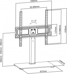 Univerzální stojan Maclean MC-450 je navržen pro použití na televizní skříňce a je kompatibilní s televizory značek jako Sony, LG, Samsung, Philips, a dalšími. Rozměry obrazovky jsou orientační a vhodné pro TV odpovídající VESA standardům: 75x75, 100x100, 200x100, 200x200, 400x200, 300x300, 400x400 mm.