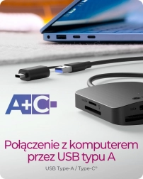 Univerzální připojení: Zařízení je vybavené USB kabely Type-A a Type-C pro větší flexibilitu a komfort. Přizpůsobte se různým možnostem připojení bez nutnosti dalších adaptérů.