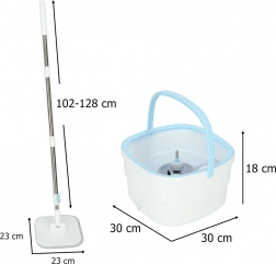 S mopem obdržíte dvě mikrovláknové náhradní podložky, které účinně sbírají nečistoty a prach bez zanechání šmouh. Kompaktní kyblík se snadno vejde do každé skříně a jeho ergonomický design zaručuje, že zvládne i nejpřístupnější zákoutí vašich prostor.